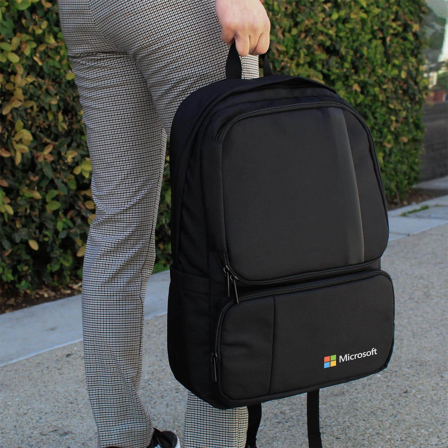New! Now with anti-bacterial fabric to keep you and your products safe and on the go! Showcase your brand’s commitment to the environment with the Canyon Backpack. Made with recycled plastic bottles and features a 15″ laptop compartment, tablet, and multiple zippered pockets. Complies with Prop 65. 19″ H x 12″ W x 6″ D