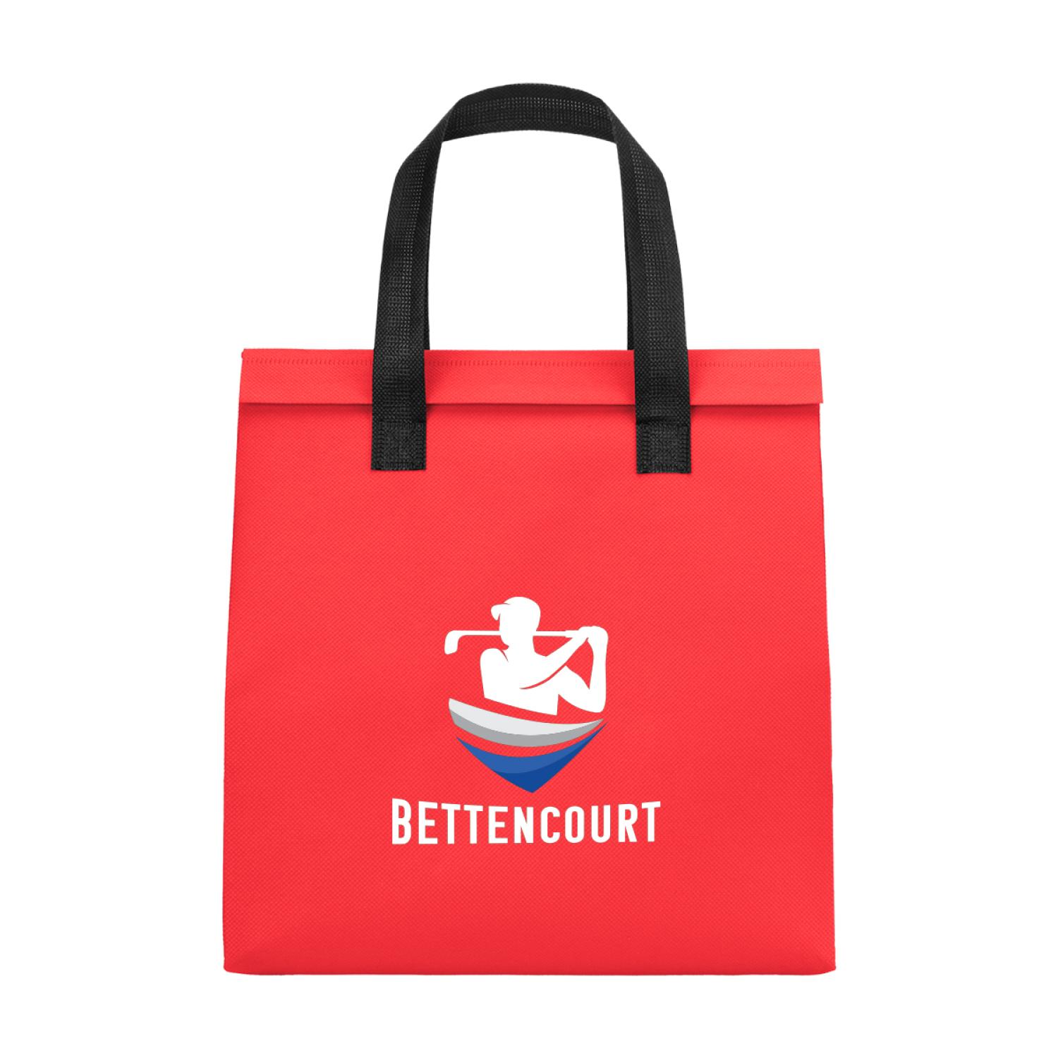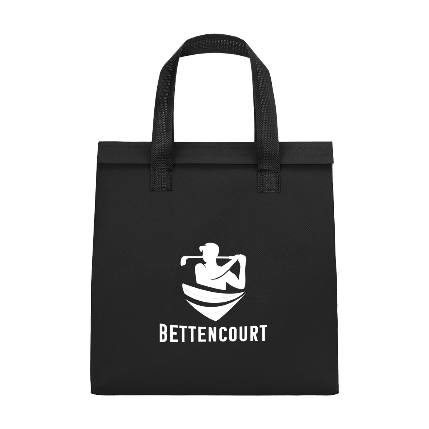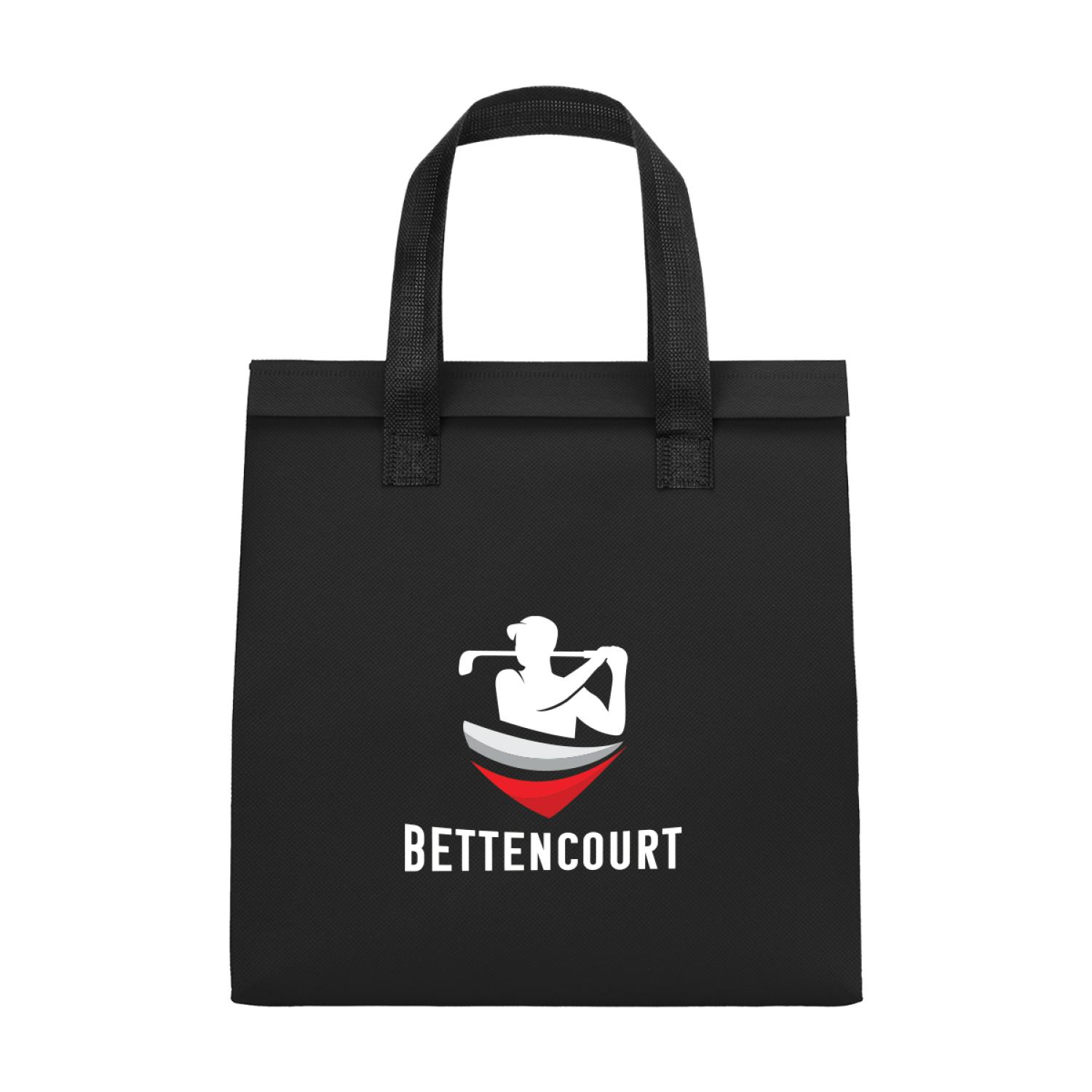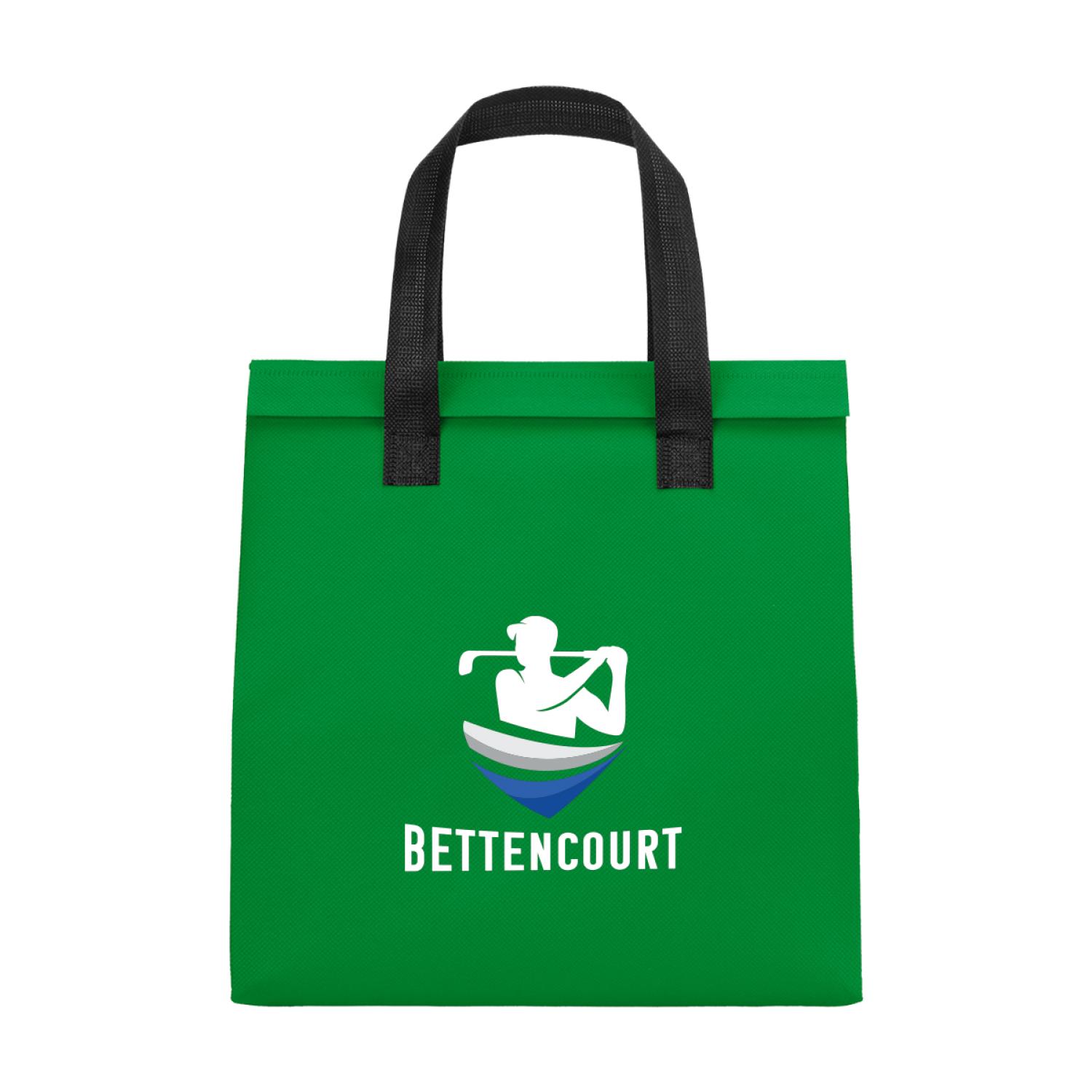 Made Of 80 Gram Non-Woven, Coated Water-Resistant Polypropylene With Foil Laminated Interior. Made From Post Consumer Recycled Materials. 6.5″ D x 10.25″ W x 11″ H