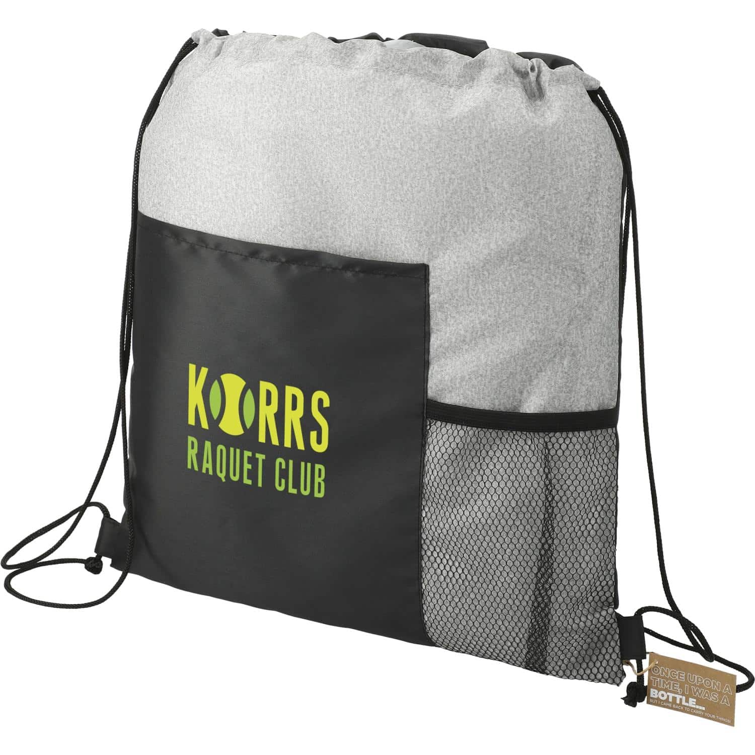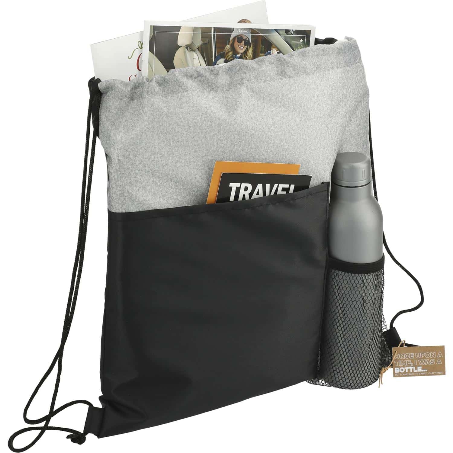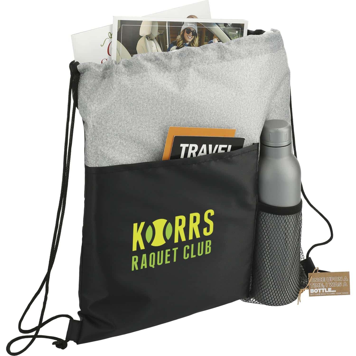 Made from RPET, the Cycle RPET Drawstring Bag offers a sustainable, functional option. Open main compartment with drawstring closure. Front slash pocket with mesh water bottle pocket. Through a partnership with 1% For The Planet, one percent of sales of all EcoSmart® products are donated to environmental nonprofits. 0.01″ D x 14.50″ W x 17.75″ H