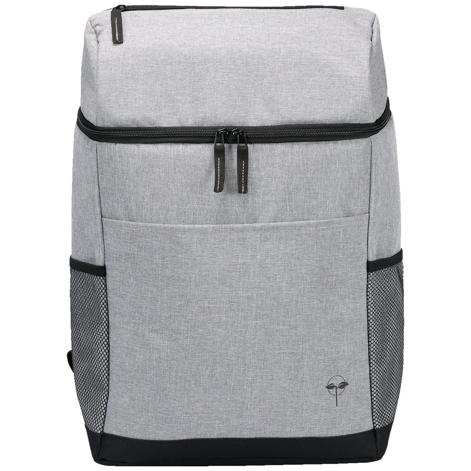 Adjustable air mesh padded shoulder straps and top carry handle Padded back panel with trolley strap Top compartment for dry products/snacks Bottom compartment holds up to 30 cans Dual side mesh pockets for added storage Front slash pocket with built-in bottle opener Constructed from rPET 300D two-tone and rPET600D polyester with PEVA liner and 5mm PE foam. 7″ D x 13″ W x 18″ H