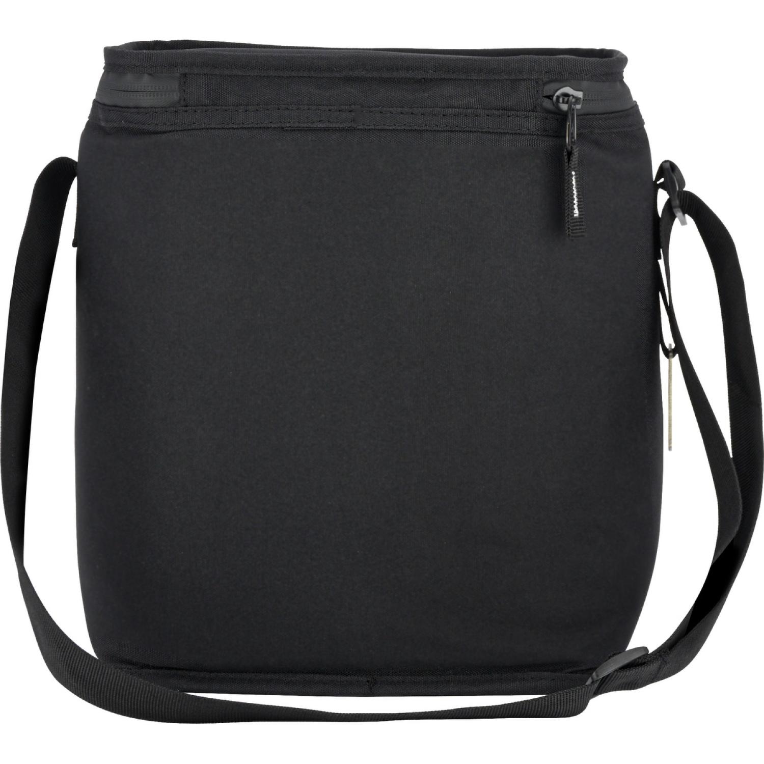 Features front slash pocket, front daisy chains with reflective accents, an attached Stainless Steel bottle opener, and an adjustable shoulder strap Part of the EarthTrendz collection which features eco-friendly, recycled materials 12 can main compartment capacity with zippered wide opening top Constructed from eco-friendly 600D/PU rPET Polyester, 210D/PU Polyester, 8mm PE foam, and 18C PEVA lining Leak-resistant heat-sealed liner. 7″ D x 10″ W x 12″ H