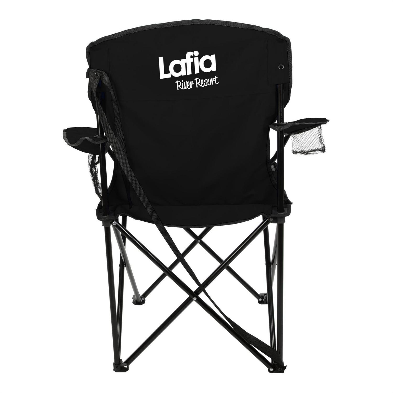 This versatile folding camp chair is crafted from RPET material containing recycled content equivalent to 32 (14 oz.) plastic water bottles. It features a mesh cup holder and program pocket for added convenience during outdoor adventures. It also boasts a sturdy frame that supports up to 300 lb. Use the attached shoulder strap to make transportation a breeze as you tote it to a campsite, picnic, festival, and beyond! Brand the chair with a full-color logo and optional name personalization to stand apart from the other campers! 20.875″ Diameter x 34.625″ H
